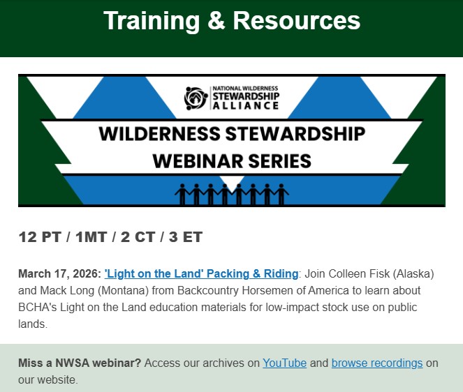 In 2025, the ITA had over 800 volunteers with 15,000 hours of volunteer time on over 350 miles of trails. Volunteers don’t need to have prior experience — they receive training before starting projects. Projects range from easy to arduous and range in length from one day to over a week. Traditional tools including crosscut saws, axes, and Pulaskis are used for trail maintenance.