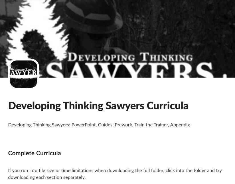 In March of 2023 the USFS released “Developing Thinking Sawyer” a module-based chain saw training course developed with seasonal fire crews and volunteers in mind. This two-day course consists of 6-8 hours classroom and demonstration, followed by a day in the field working on various sawyer problems and certification evaluation. DTS covers both Chainsaw and Crosscut and is recognized by all three federal land agencies.