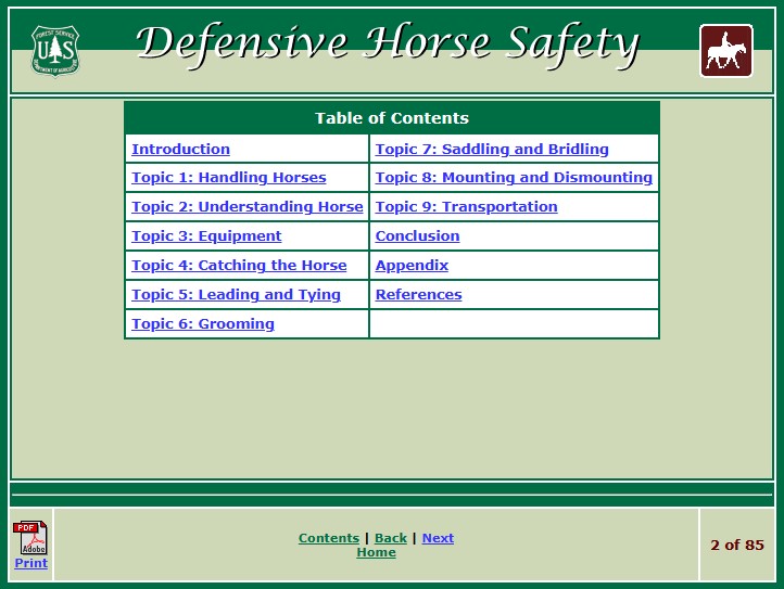 USFS Defensive Horsemanship Manual (pdf) / BCHA Mountain Manners (pdf)